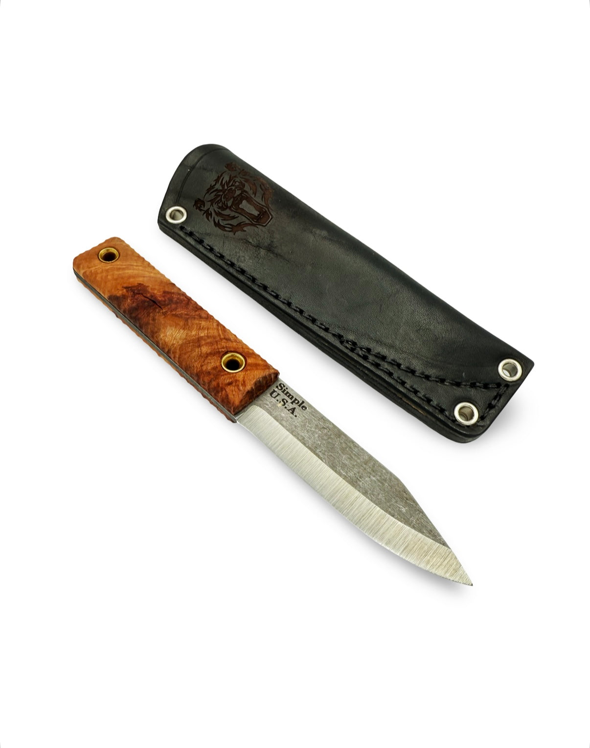 The quintessential Bushcraft knife must be sharp, comfortable, and easy to sharpen. Bushcraft knives should have the blade tip close to the center line of the handle with an oval cross-section and be free of protruding guards and finger grooves. The Simple checks all the boxes–and more!
