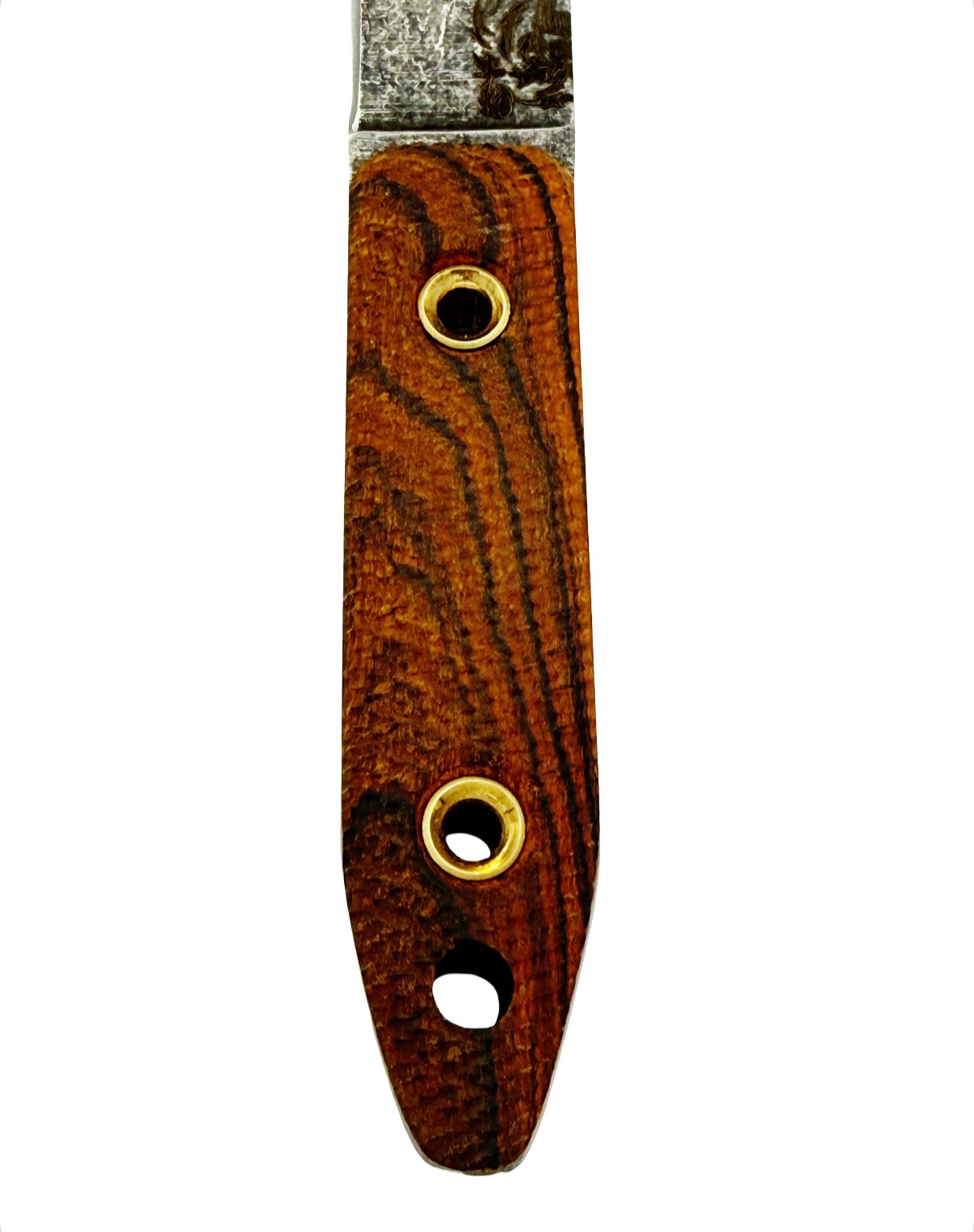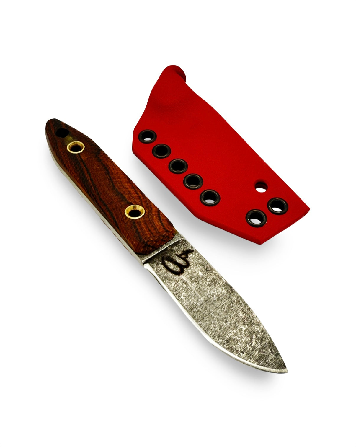 Strength and conditioning trainer and survival skills practitioner, Jason Salyer, designed this knife as an Everyday Carry (EDC) woods knife. This knife features Stabilized Dogwood scales directly from Jason's property as an option–to give it that personal touch. With an approximate 3.5-inch handle, you'll certainly have enough room to complete various EDC tasks. The smallish 2.75-inch long blade features a full flat grind designed for slicing and much more!