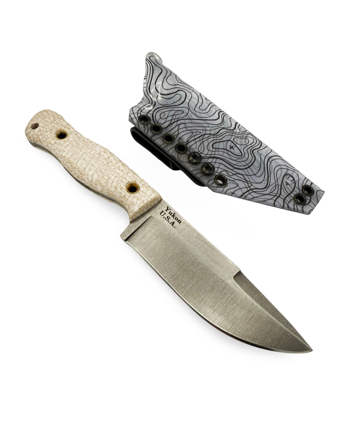 The Yukon knife is a high-quality tool built for the toughest of tasks. With a 5-inch blade and a thickness of .187 inches, this knife is perfect for heavy-duty jobs. The blade is made of 52100 high-carbon steel and features a Saber grind with a Swedge for excellent penetration. The 90-degree spine makes using the knife as a Ferro striker and tinder scraping tool easy, while the black linen Micarta handle scales provide a comfortable and secure grip. The knife's finish is a rock-tumbled acid wash, which gives it a unique and stylish look. Made in the USA, The Yukon knife is a reliable and durable tool that will last for years to come.